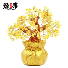 臻唯 开光水晶招财树摆件 风水家居饰品黄水晶钱袋发财树摆件礼物