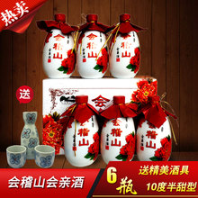 绍兴黄酒会稽山会亲酒特型黄酒450ml*6礼盒黄酒半甜型送酒具