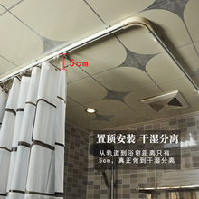 免钉浴帘杆L形弧形浴室浴帘套装免打孔U形转角卫生间不锈钢伸缩杆