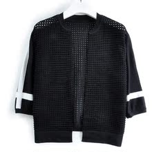 小香风时尚撞色立体镂空弹力五分袖针织开衫女外搭披肩短款小外套