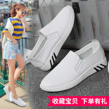 2017新款透气网鞋女夏韩版真皮百搭一脚蹬女鞋平底休闲镂空小白鞋