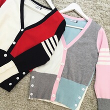 针织开衫女2017春季新品撞色拼接修身长袖外套