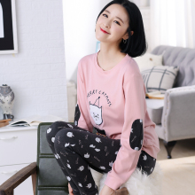 2016新款睡衣女秋纯棉长袖韩版可爱卡通女士全棉家居服春秋款套装