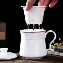 陶瓷茶杯带盖 三件套陶瓷带盖过滤网办公水杯子茶杯 礼品杯子