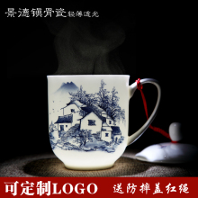 景德镇茶杯陶瓷带盖骨瓷小号水杯子青花瓷器办公会议礼品杯定制