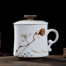 景德镇茶杯陶瓷带盖水杯 创意陶瓷杯子 办公会议杯