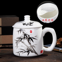 茶具陶瓷茶杯 陶瓷杯带盖过滤水杯子陶瓷办公室泡茶杯 办公个人杯