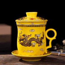 景德镇茶杯 龙杯陶瓷会议办公茶杯礼品杯 带盖带茶漏杯碟泡茶杯子