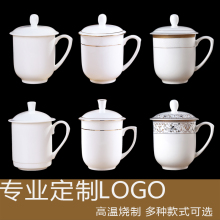 办公茶杯 陶瓷带盖水杯 瓷杯子 办公会议杯 开会杯 可定制 包邮
