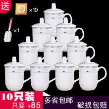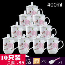 景德镇 陶瓷杯带盖 办公室会议杯酒店陶瓷茶杯400ml中号杯10只装