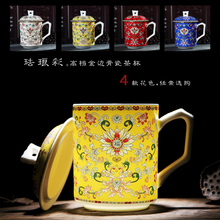 景德镇珐琅彩骨瓷大号茶杯带盖会议杯 陶瓷茶杯办公杯礼品杯包邮