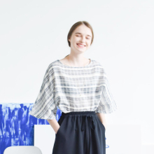 自然而蓝 | 麻 廓形感 横条纹蝙蝠衫上衣 独家自制