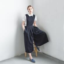 自然而蓝 | 春季 潇洒 藏青色背带阔腿裤 独家自制
