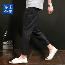 洛克企鹅夏季亚麻休闲裤男士宽松九分裤日系哈伦裤大码潮流小脚裤