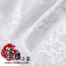 古装汉服礼服娃衣床品沙发抱枕面料COS服装面料/织锦—白底白龙纹