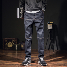 日系复古潮牌牛仔裤男弹力大码宽松窄脚哈伦裤子春季新款2017男裤
