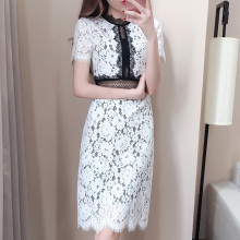 LUMN2017夏装新款拼接蕾丝连衣裙高腰气质名媛OL裙修身收腰包臀裙