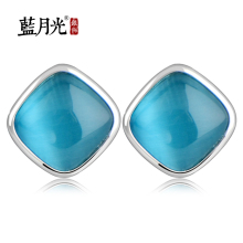 蓝月光s925银饰品合成猫眼石耳钉女优雅韩版耳饰情人节礼物送女友