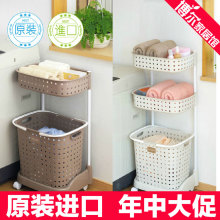 日本进口脏衣服收纳筐 脏衣篮 塑料洗衣蓝 浴室脏衣篓 三层置物架