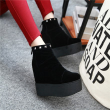 欧美风短靴厚底松糕鞋内增高马丁靴女鞋坡跟高跟鞋铆钉短筒女靴潮