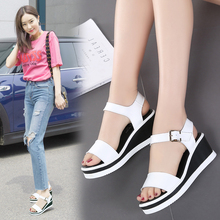 2017夏季新款韩版凉鞋女学生百搭厚底松糕坡跟女士真皮中跟凉鞋女