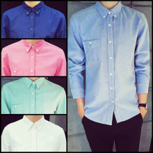春季新款男士纯棉纯色长袖衬衫韩版修身牛津纺百搭大码衬衣男装潮