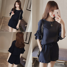 2017大码夏装新款胖mm短袖T恤胖妹妹雪纺上衣短裤时尚两件套装女
