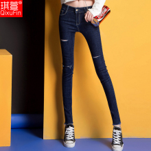 2017春夏新款韩版中腰显瘦修身磨破洞九分裤牛仔裤女弹力小脚裤潮