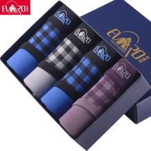 印花男士内裤男平角裤纯棉青年个性潮四角内裤性感4条装礼盒宽松