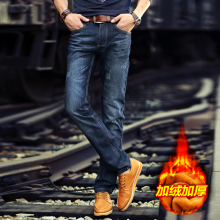 弹力男裤子加绒加厚牛仔裤男士秋冬款直筒小脚裤修身青年韩版潮流