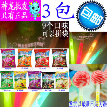绿草香荧光棒棒糖3包60根10克9口味零食发光儿童糖果夜店包邮