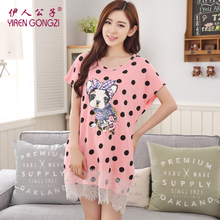 伊人公子夏季韩版甜美薄款纯棉睡裙波点短袖睡衣女宽松休闲家居服