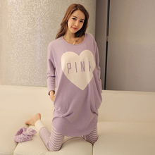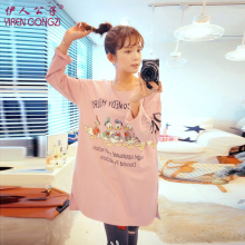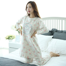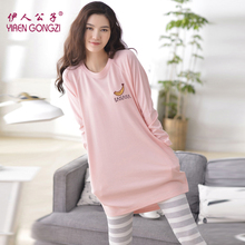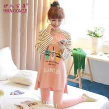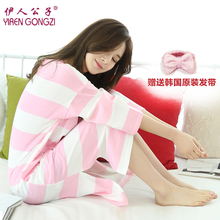 伊人公子春秋季家居服女韩版两件套加长款睡衣女全纯棉宽松可外穿