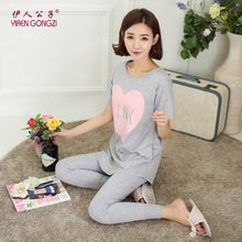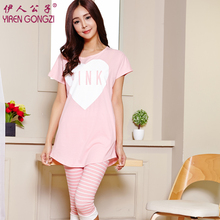 伊人公子 夏季睡衣女短袖七分裤睡衣女夏纯棉薄款韩版家居服套装