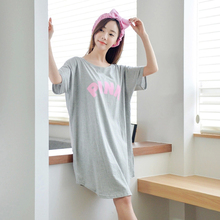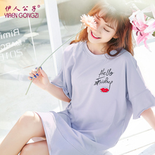 伊人公子韩版纯棉睡裙女夏短袖宽松 夏季全棉睡衣女士裙子家居服