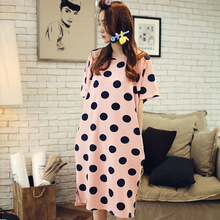 伊人公子夏季韩版甜美长款纯棉睡裙波点短袖睡衣女宽松休闲家居服