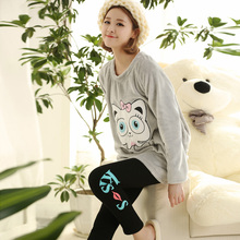 伊人公子秋季睡衣女款长袖纯棉甜美韩版卡通全棉秋天女家居服套装