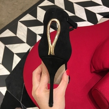 2017夏季欧美磨砂绒面露趾高跟凉鞋女细跟性感一字扣带中跟女凉鞋