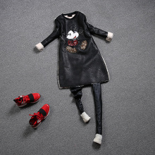欧洲站2016秋冬装新款欧货长袖印花卡通亮片显瘦加厚连衣裙女装潮