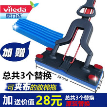 德国微力达胶棉拖把大平面夹布吸水擦拖布对折四面挤水拖把送替换