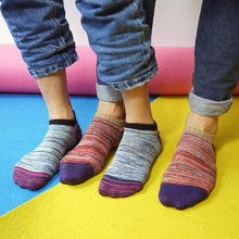 纯棉复古民族风竹节纱渐变条纹撞色 粗线耐穿靴下情侣袜子船袜短