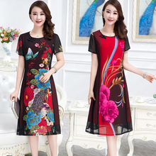 胖妹妹2017夏装新款大码女装中年胖mm印花雪纺衫印花妈妈连衣裙女