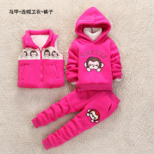 女童套装冬装2016新款儿童加厚加绒卫衣三件套休闲运动童装3-8岁