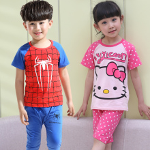 女童睡衣套装夏季儿童装男童短袖家居服小女孩卡通莱卡棉内衣大童