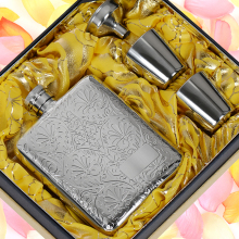 百事乐富贵唐草8盎司304加厚不锈钢酒壶随身便携礼盒套装定制刻字