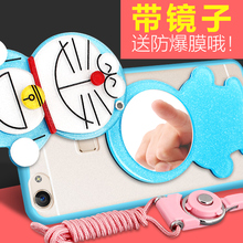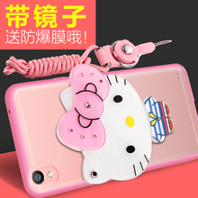 R9手机壳卡通r9保护套R9plus卡通后壳挂绳镜子防摔全包磨砂女薄