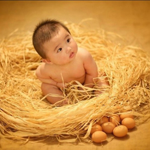 出租宝宝百天照服装 婴儿满月照百日拍照摄影道具木质鸡蛋拉菲草