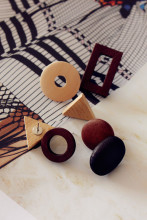 欧美极简复古原木质天然镂空圆形长方形耳钉耳环(一对入)