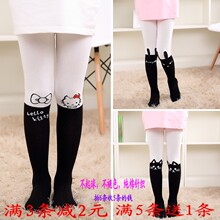 春秋款韩版KT猫拼接儿童全棉针织假中筒连裤袜女童装打底裤袜子