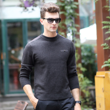 中年男士圆领加厚全羊毛衫男装纯色大码针织衫冬季加厚毛衣爸爸装